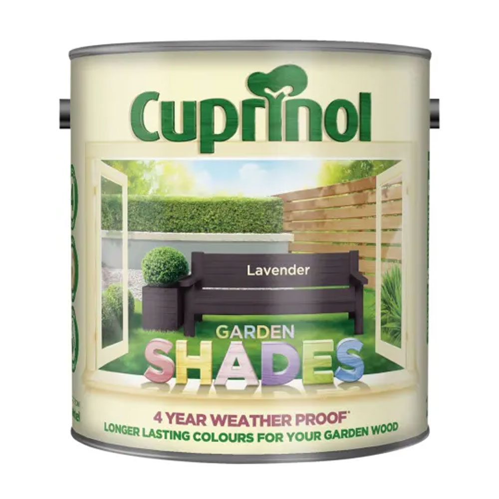 Cuprinol Garden Shades has been specially developed to colour and protect sheds, fences and other garden wood, with 6 years weather protection. Its special pigments ensure a rich colour and allow the natural texture of the woodgrain to shine through. It can also be applied on terracotta, brick and stone, to bring beautiful colours to the rest of the garden. It is water based and harmless to plants and pets.Cuprinol Garden Shades has the following specifications: Colour: Lavender.Size: 2.5 Litre.