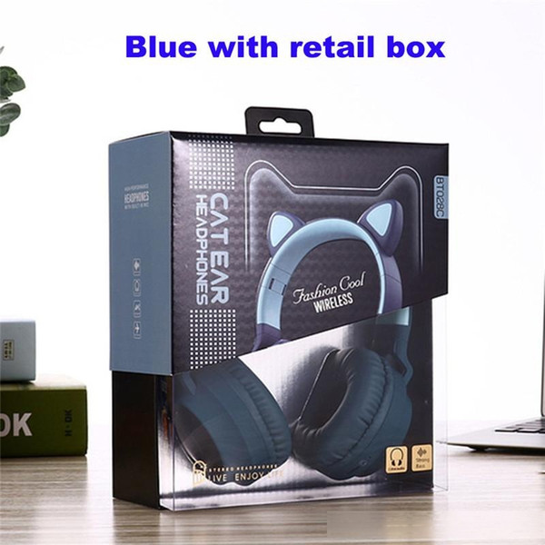 cute led cat bluetooth 5.0 headphones noise cancelling headset support tf card 3.5mm plug with mic stereo earphones