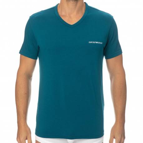 Regular-fit t-shirt made from ultra soft, lightweight and comfortable cotton. Simple and elegant cut. Short sleeves and V-neck. Contrast Emporio Armani logo on the chest.