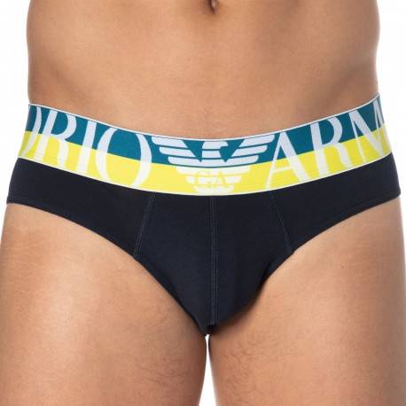 Brief made from very soft and comfortable stretch cotton. Simple and elegant low-rise cut. Lined front pouch. Emporio Armani wide elastic waistband.