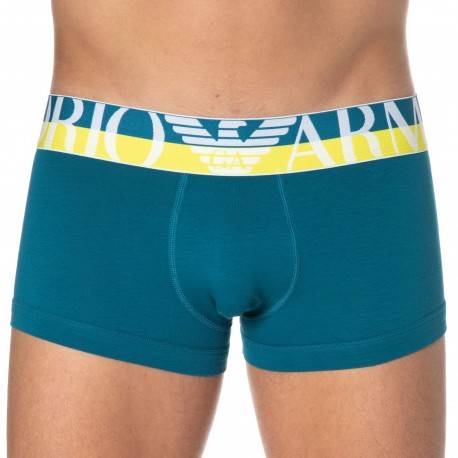 Trunk made from very soft and comfortable stretch cotton. Simple and elegant low-rise cut. Lined front pouch. Emporio Armani wide elastic waistband.