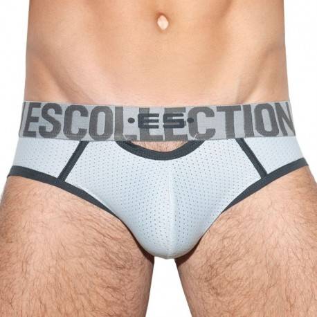 Low-rise brief made from lightweight and breathable sports mesh. Original and sexy fitted cut with double opening on the front and back. Contrast trim. ES Collection elastic waistband.