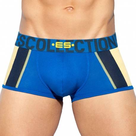 Trunk made from soft and lightweight stretch viscose. Low-rise and fitted cut. XXL shaped pouch for an excellent support. Jeans panel on each side. ES Collection jacquard elastic waistband.