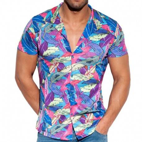 Short-sleeved shirt from made from fine, lightweight and breathable microfiber. Tropical leaf pattern. Very fitted cut. ES Collection logo embroided on the left chest.