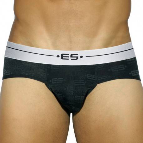 Low-rise brief made from soft and pleasant to wear microfiber. ES Collection logo woven in the fabric in Jacquard style. The push up pouch enhances your manhood without any padding. ES Collection silver waistband.