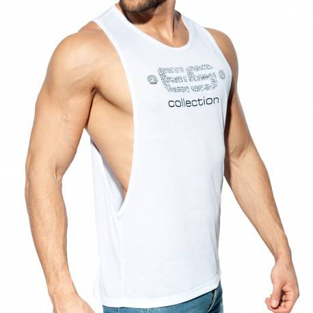 Low armholes tank top made from a soft and silky blend. Ultra-lightweight and breathable fabric for summer heat. ES Collection logo with integrated LGTBI+ claims on the chest.