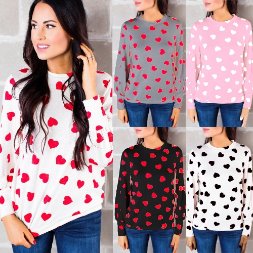 features cute heart prints all over, long sleeves with narrowed cuffs and nigh neck style. Its relaxed cut will bring you comfort and fashion.