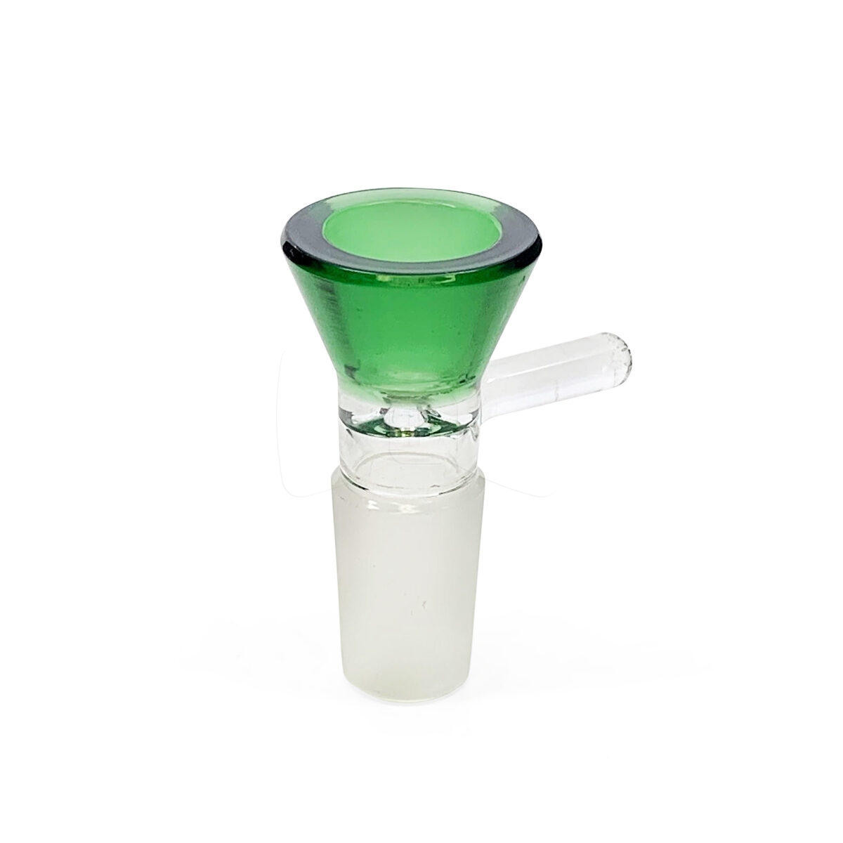 Create a better smoke session with these 14mm and 18mm sized bowls. Each crafted from sturdy glass and sporting a clean and simple look. These high quality attachments will ensure a solid caliber replacement for your rig. Styles and colors will vary. Need a female flower bowl ? We have those in 14mm and 18mm as well!