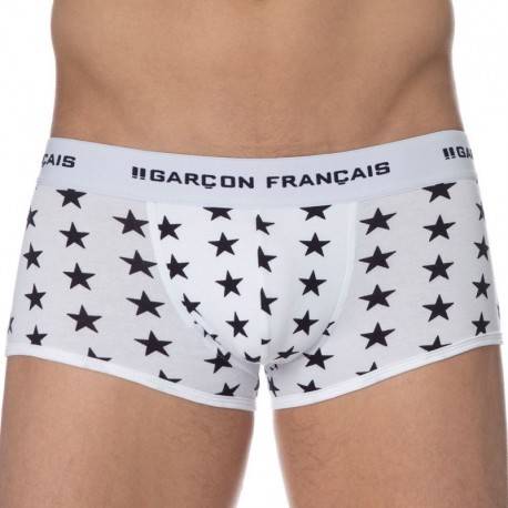 Fitted, soft, flexible and comfortable low-rise boxer. Original star print. Beautiful Garçon Français waistband and contrasting trims. 100% made in France.