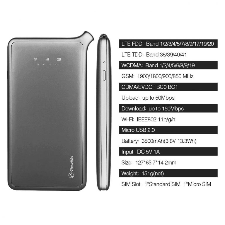 GlocalMe lets you have access to high-speed 4G LTE Internet with 150Mbps download and 50Mbps upload speed. This hotspot automatically detects the best network coverage in over 100 countries without charging you a roaming fee. Thanks to its innovative CloudSIM Technology, G3 dynamically switches to the best local network SIM-Free, no contract needed.