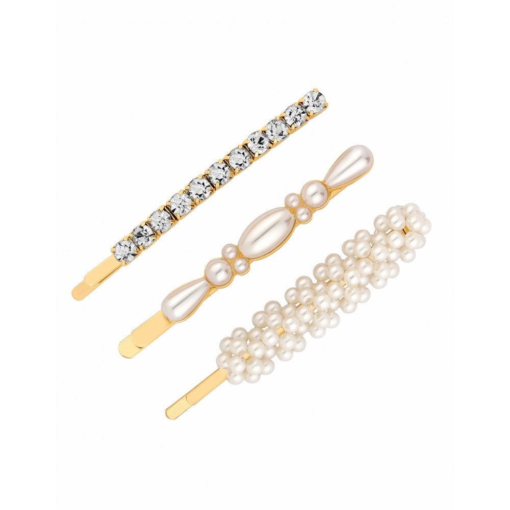 Gold Plated Crystal And Pearl Mixed 3 Pack Clips