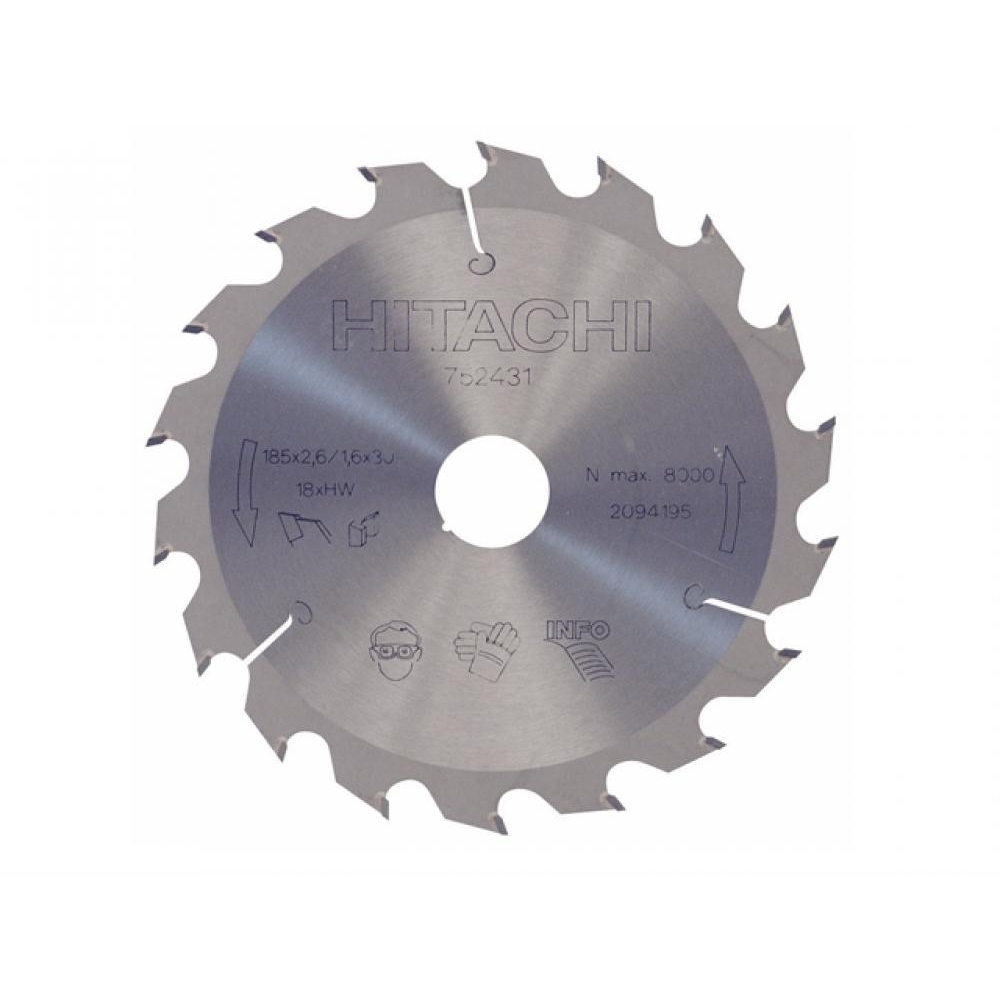Hitachi Circular Saw Blade 185 x 30 x 18 Tooth TCT with 2.6mm kerf suitable for cutting wood. Max rotation speed 8,000/min.