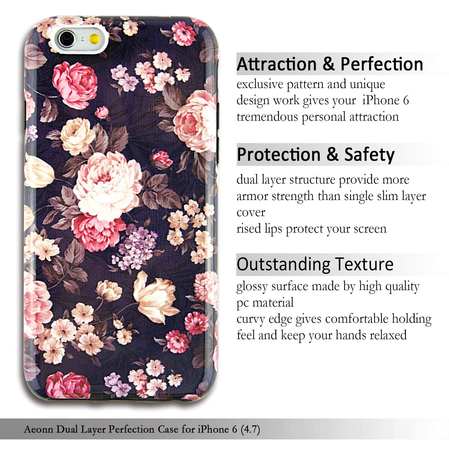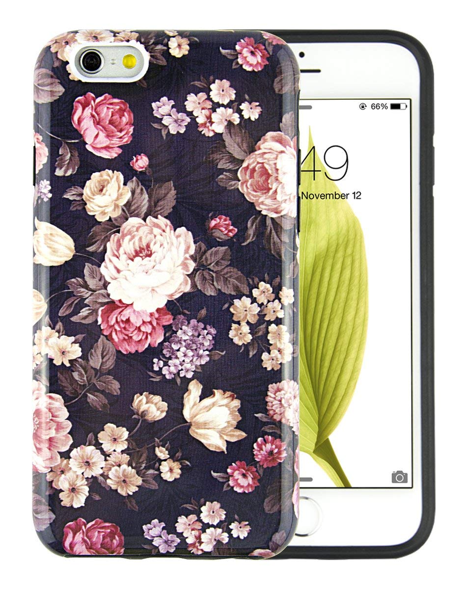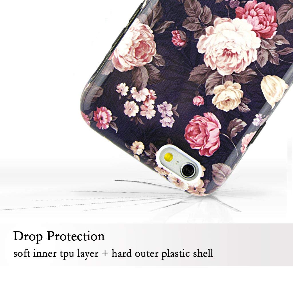 iPhone 6S Case for Girls, Cute 6S Case, Dimaka Floral Pattern Double Layer Protective Case with Fancy Glossy Surface for iPhone 6 and 6S 4.7″ (Obsession Camellia)