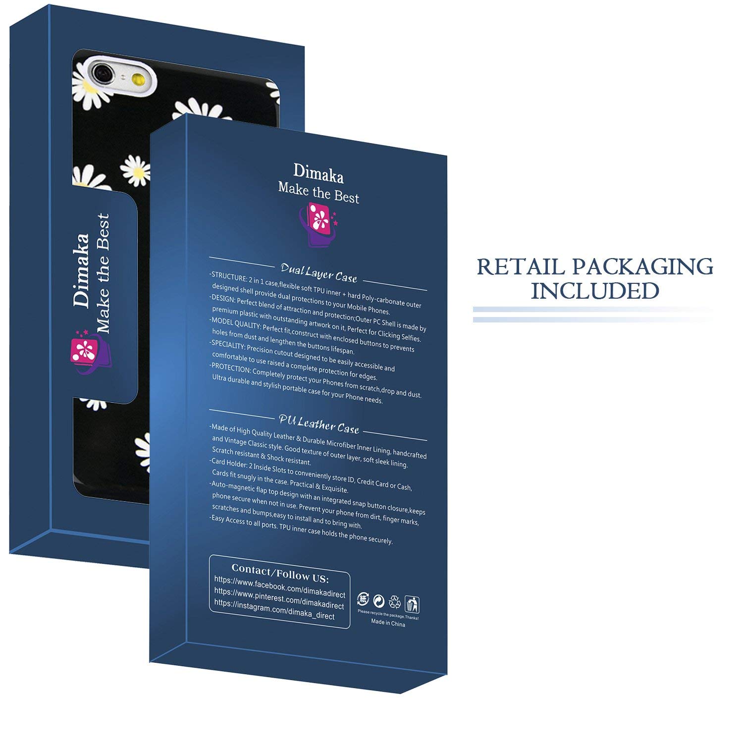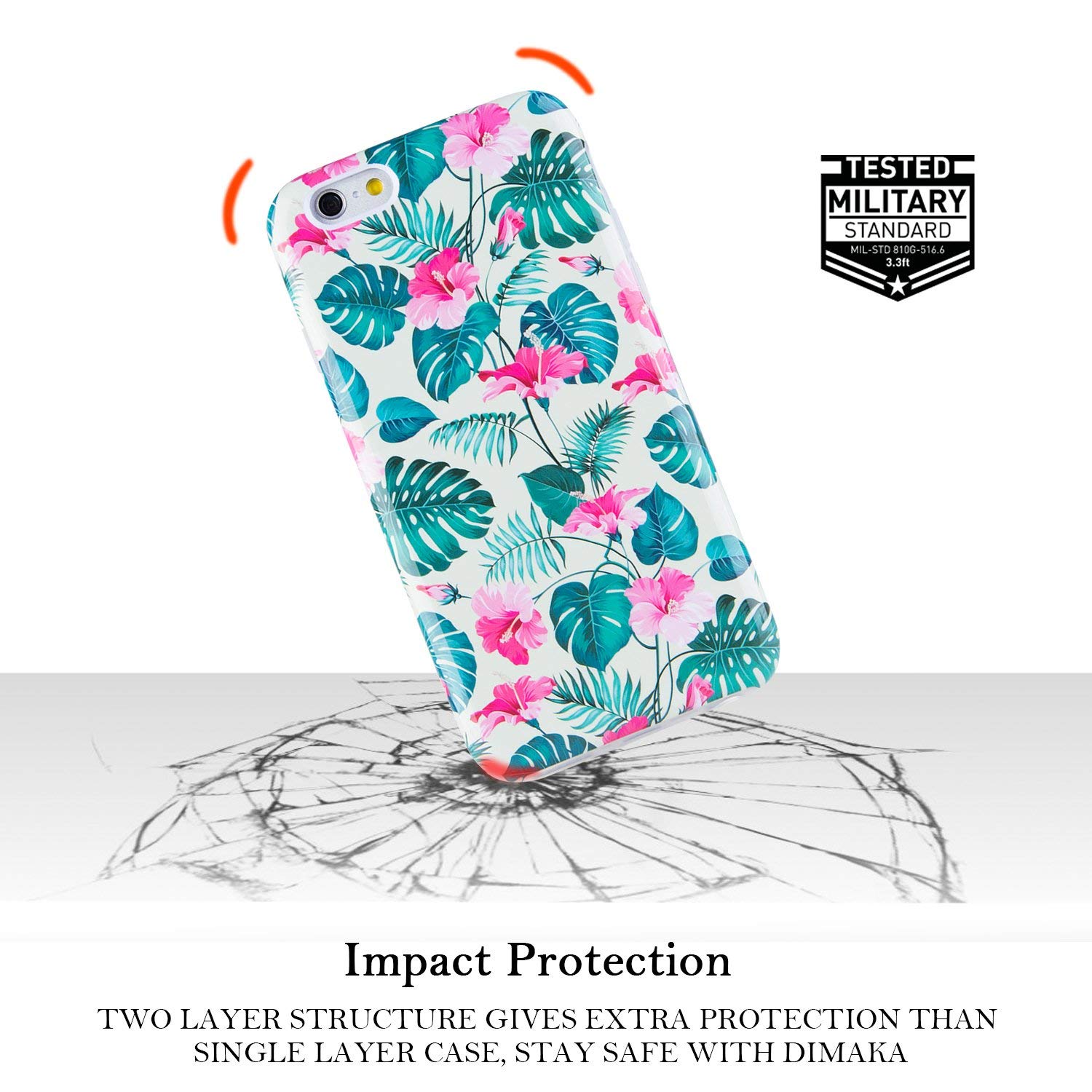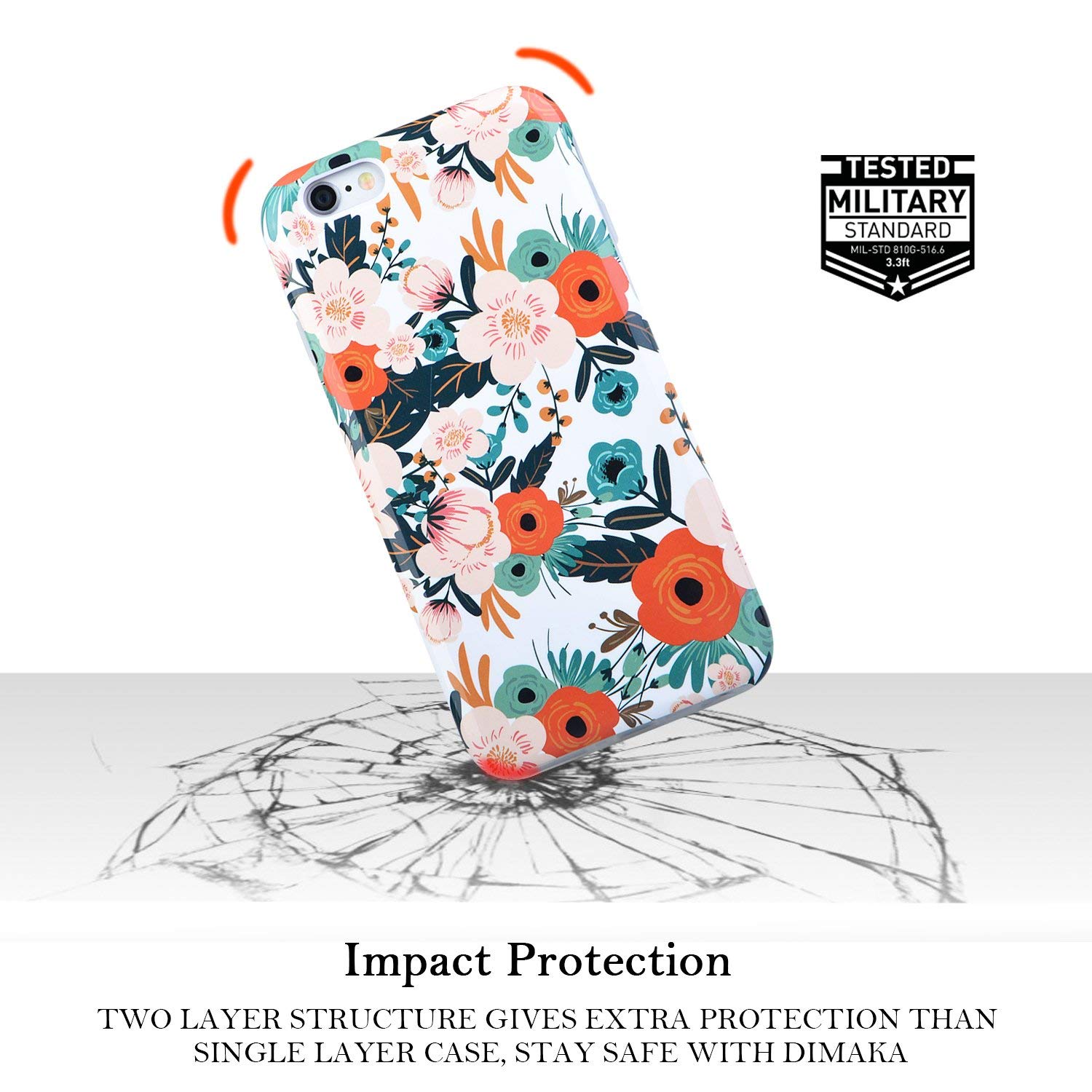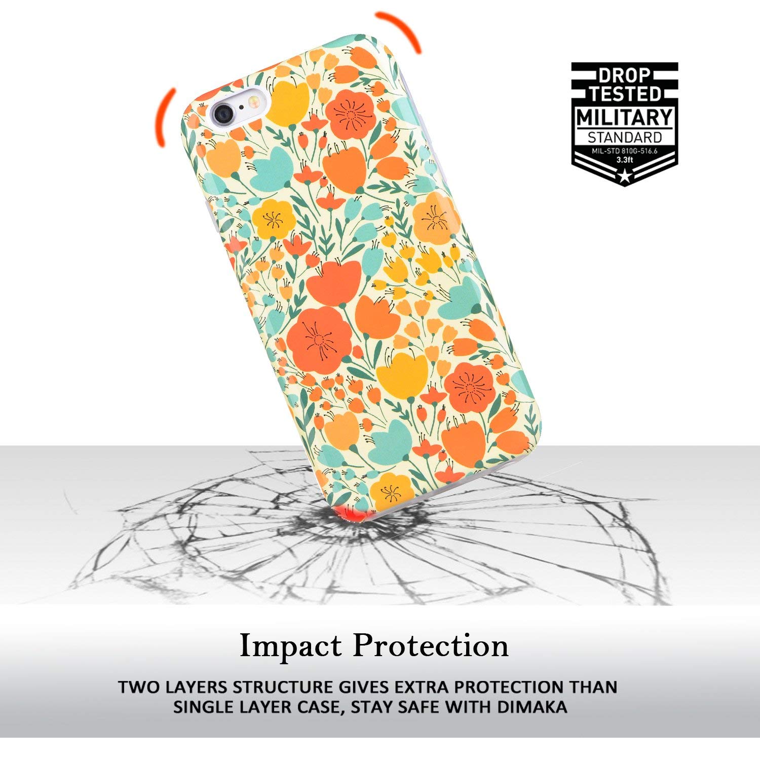 One Dimaka Hybrid Case = One Ink Print Pattern Covre + Full Corner Covered/Rounded Edges TPU Bumper. Designed to work with all models of the iPhone 6 and iPhone 6S 4.7″ inch 2014. Soft inner TPU and hard Polycarbonate outer shell dual layer case offers excellent shock absorption and abrasion resistance while maintaining a thin form factor and providing an extraordinary looking