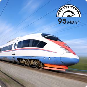 *Up to 95MB/s read transfer, write speeds lower. Speeds based on internal testing. Actual performance may vary. x=150KB/s.