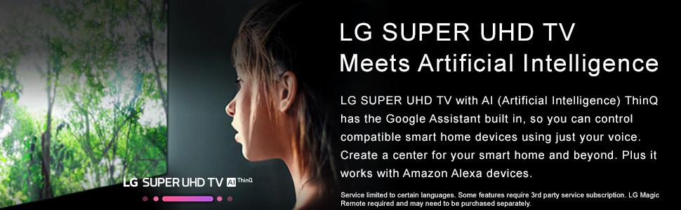 ● LG SUPER UHD TV with AI (Artificial Intelligence) ThinQ has the Google Assistant built in, so you can control compatible smart home devices using just your voice through the LG Magic Remote. Create a center for your smart home and beyond. Plus it works with Amazon Alexa devices (sold separately).