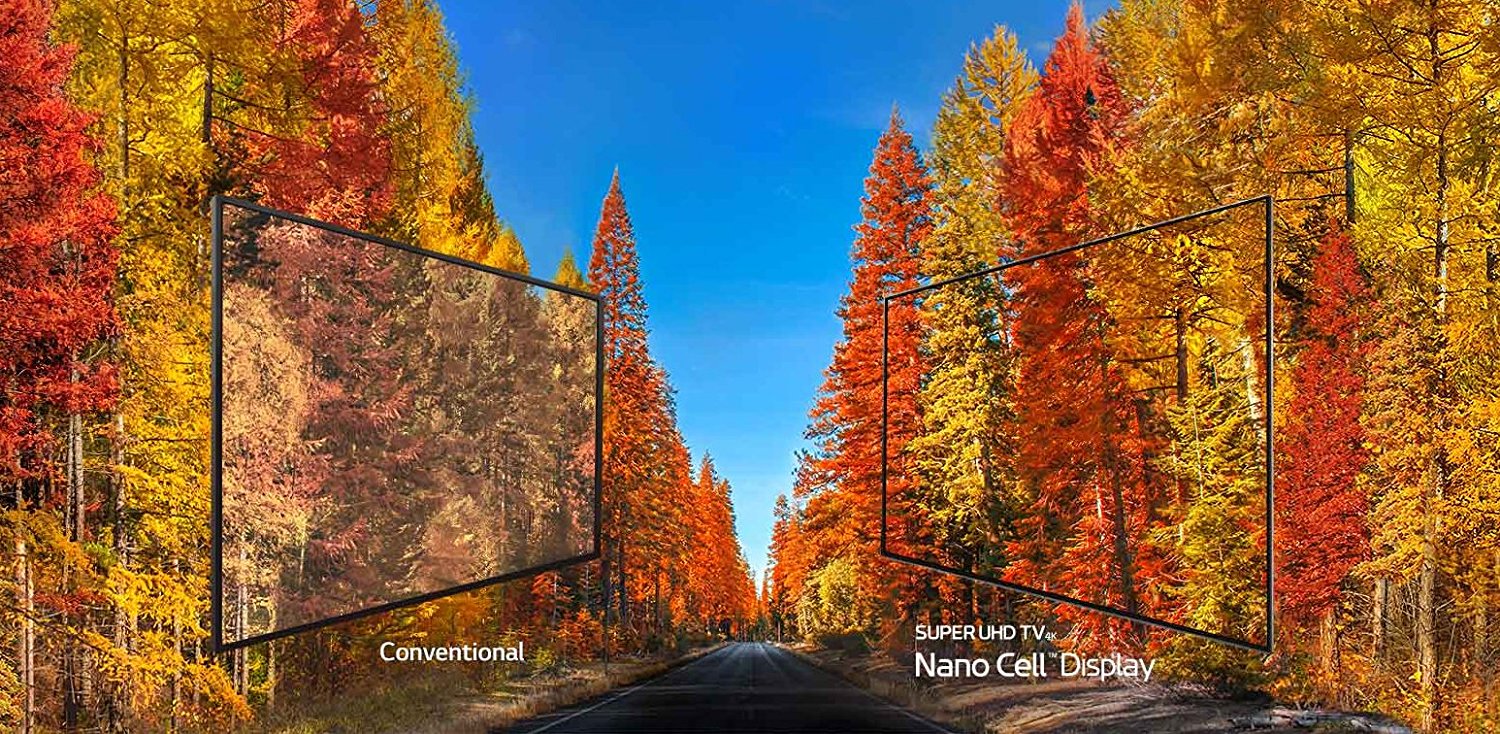 Nano Cell Display has the ability to display a wider spectrum of spectacular colors than conventional TVs, resulting in bluer skies, greener grass and a more lifelike picture with precise, subtle gradation of shades.