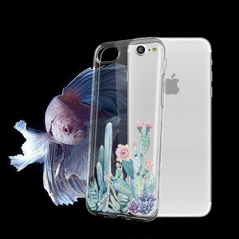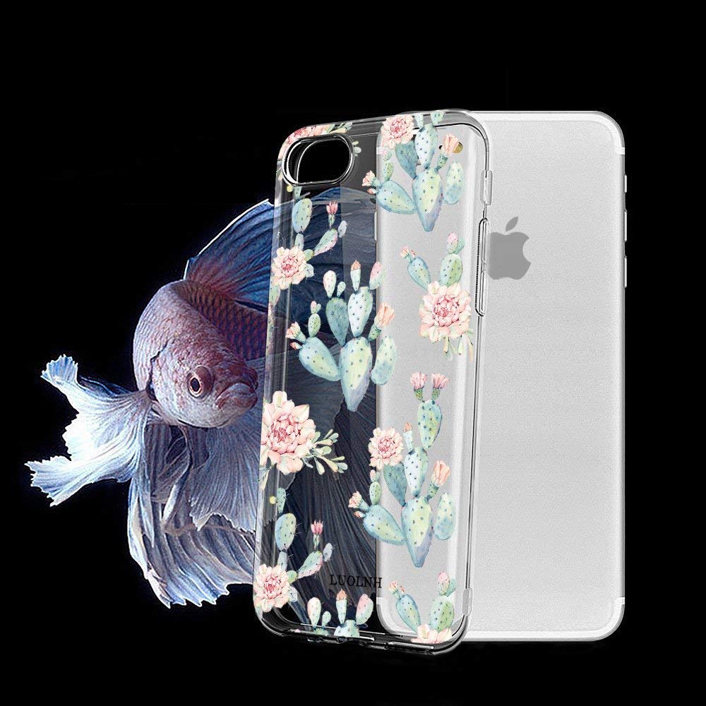 luolnh for iPhone 6 Plus Case,iPhone 6S Plus Case, Slim Clear Chrome Gold Floral Pattern Soft Flexible TPU Back Cover Case for Apple iPhone 6 Plus/6S Plus 5.5 inch -Cactus Flower