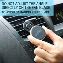 Please note:The clips can not be rotated directly on the fan blades, there will be the risk of damage to the outlet of the car, it should be the first to manually rotate the row you need the direction of the angle and then inserted into the fan ,then fix it . |