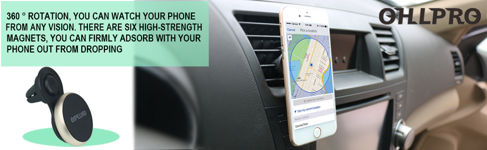1)Magnetic phone car mount This car vent magnet phone holder, 6 super magnets can be firmly adsorbed 4 inches to 6.4 inches of smart phones,