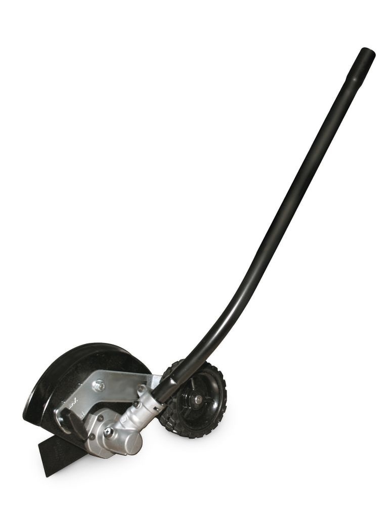 Large rubber guide wheel for stability and control.229mm (9) double edge hardened steel blade for tough jobs.Over-sized adjustable knob for quick and easy height adjustment.Large rubber flap shields against debris.