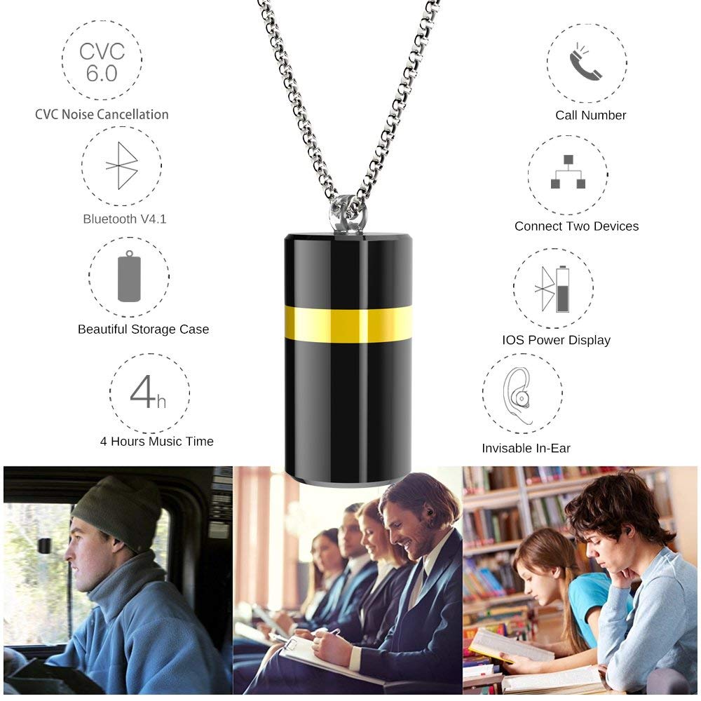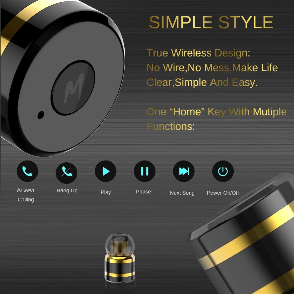 ● WEARING COMFORTABLE:In Ear Ultra Mini And Light Weight (ONLY 4g) Will Not Give Any Burden On Your Ears.The Lightweight Small Wireless Headset With Ergonomic Design Ensure Snug,Secure,Fitting,Discreet,Stable Wearing Experience.The Tiny Bud Do Not Fall Off Stay In Your Ear Well,Also Will Not Cause Ear Swelling.The Smallest In-Ear Earbud Without Flashing Light Can Easy Hid in Cochlea,These Invisible Features Allow You Enjoy Music Even In a Meeting Or At Office.● HIGHT QUALITY FASHION DESIGN:After Hundreds Times Change,We Designed a Beautiful Metal Ring Earpiece.Be Superior In Material And Excellent In Workmanship We Worked Out The Little Set.The Pretty Cordless Ear bud With Sleek Rounded Corners Charging Duck are Perfectly Pocketable and Portable.The Pod Enclose Earphone for Fully Protection.The Duck With Hook is Easy to Add to KeyChain,Also Additional Pendant Necklace Not Only Hook The Storage Dock,But Also As A Wearing Decoration.● LONG BATTERY LIFE:The True Wireless Headphone Built In 50mAh, Enjoy Totally 3-4 Hours Playtime.The One Earphones With Bluethood V4.1 Can Compatible with iPhone Xr 7 6S 6 5 5C 5S SE,iPhone 8 Plus,iPhone Xs Max,ipod touch, ipod nano 7,Samsung Galaxy 8 S8 S9 Plus S7 S6 Edge Note 9 8,BlackBerry,LG G5 G4 G3,HTC,iPad Pro,iPad Mini 1 2 3 4,xiaomi,Google Pixel 2,nexus 5 5X,Vivo,Macbook Pro,Motorola,Smart TV,Verizon,iWatch and other IOS & Android cell phones,Bluetooth-enabled tablets.● SOUND QUALITY & NOISE ISOLATING:The Noise Cancellation Technology(not active noise cancelling) CVC 6.0 Filters Ambient Noise and Echo,Helps You Enjoy High Quality Music and Clear Phone Calls Wherever.The Noise Reduction Small Sweatproof Ear bud With HD Microphone Handsfree for Car Driving,Sport,Running,Gym,Exercise,Workout,Watching TV,Sleeping.Voice Prompts for Calls, Pairing and Low Battery.● SIMPLE STYLE & AFTER-SALES:One Home Key With Mutiple Functions,Press Once:Answer/Hang Up,Press Double:Next Song,Press 2 Seconds:Reject The Call,Long Press:Power On/Off.The Hands Free Bloothtooth Headphone Can Connect Two Devices at The Same Time.Magnetic Wireless Earbud Sets With Fahion Design and Good Looking are Best Gift For Women,Men,Adults,Boys and Girls. The Hidden BT Wireless Earpieces have 12 moth Replacement Waranty and 100% Guarantee.Your Satisfaction With Headsets is Our Top Priority!
