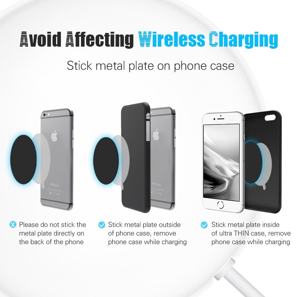 for WIRELESS CHARGING, please place sticky pads on the phone AWAY FROM wireless charging sensor. Or place metal plate on phone case, remove case when wireless charging
