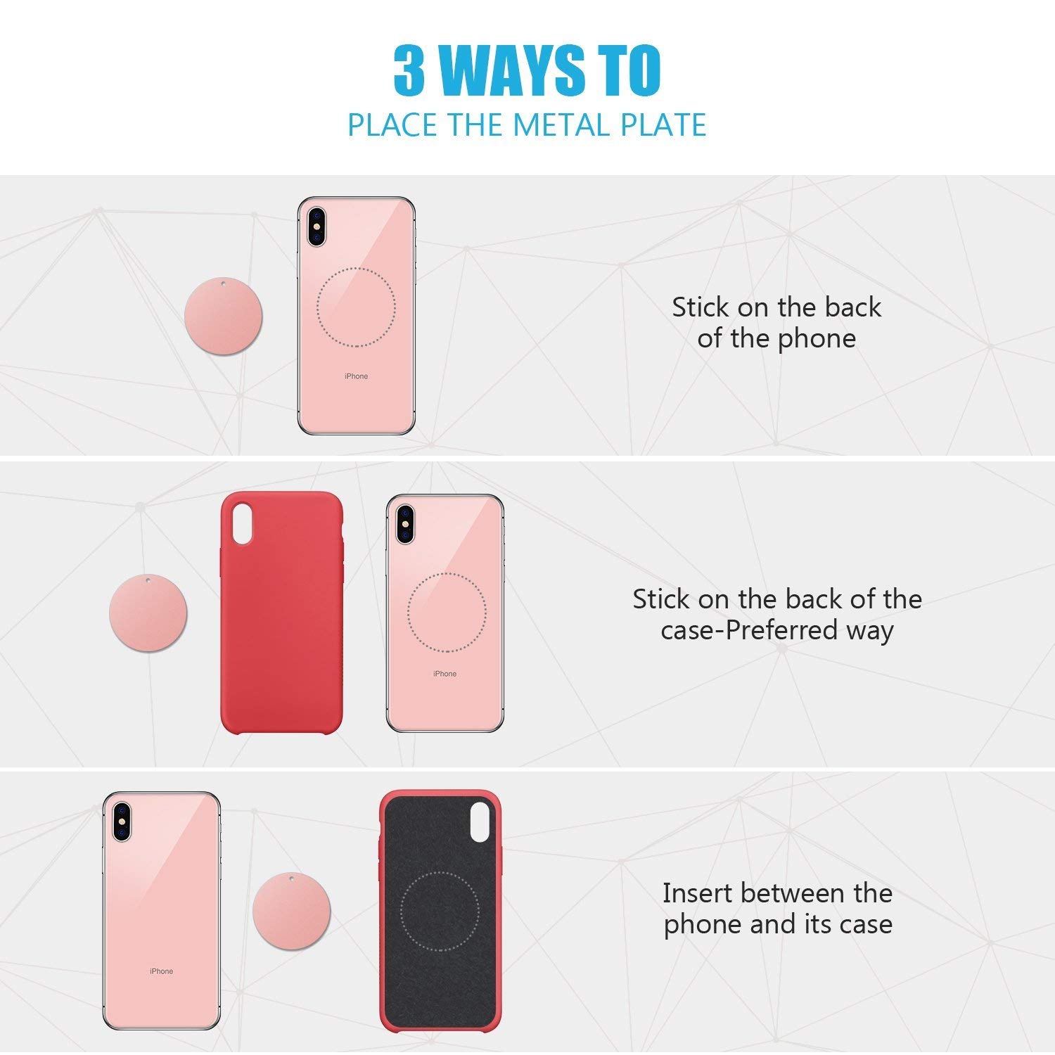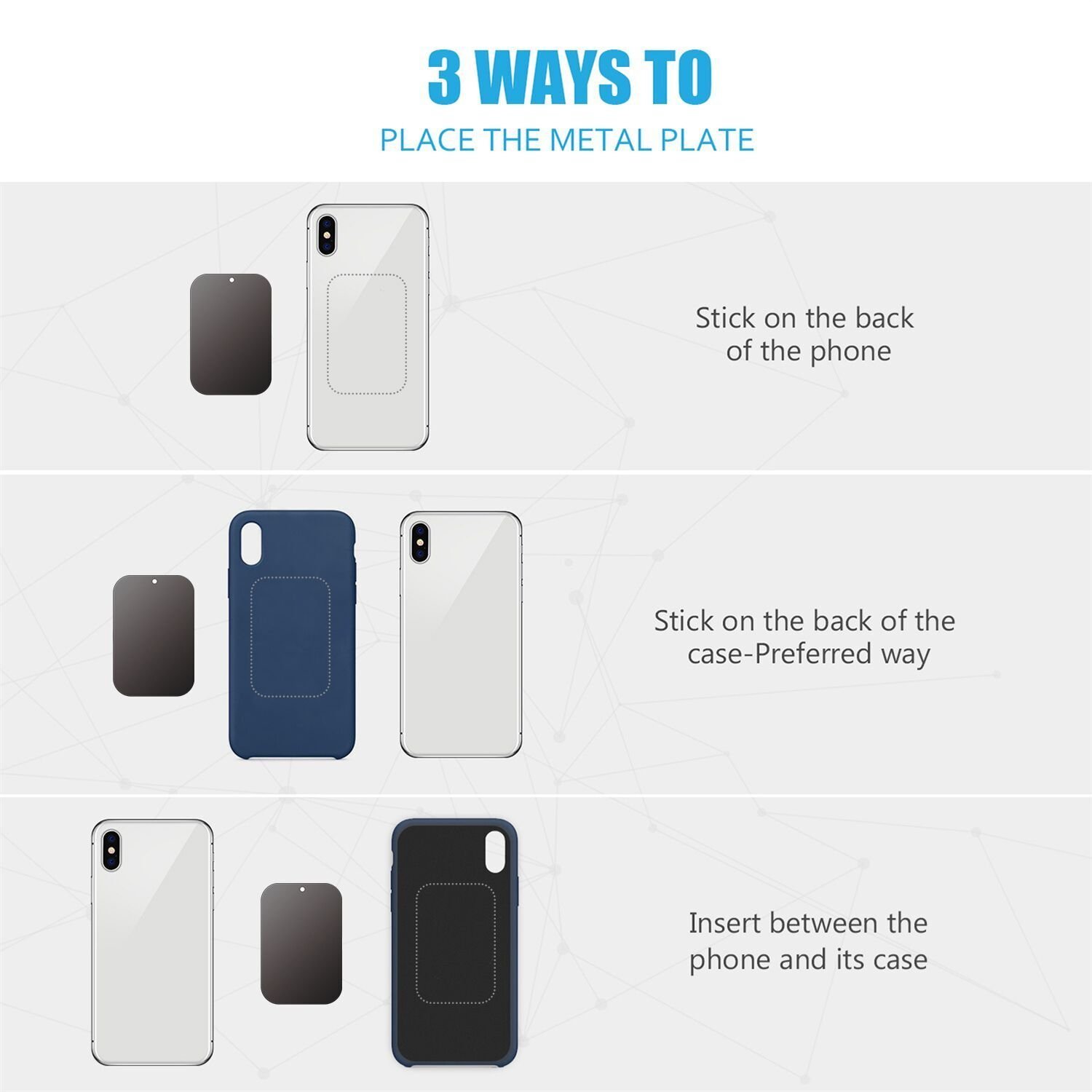 WizGear Metal Plate for Magnet Mount What good is having a magnet mount without the metal plates for the device to attach itself to the magnet? Bringing to you WizGear rectangular magnetic plate for mount, which is easy to attach onto device surfaces and to set up on the magnet mount for safekeeping of the device! Rectangular metal magnetic plates to attach device onto magnet mounts. The magnetic plate mount easily sticks to the back of devices for easy mounting. Works with magnet mounts designed to hold devices with the metal plate. Great to use with smartphones and tablets. Easy to attach and remove without a hassle. Having a spare magnetic plate to go with your magnet mount is never harmful; after all, they are extremely useful to make the magnet mount work. This magnetic plate mount is rectangular with rounded corners that easily stick to the back of devices and the magnet mount so that the device can be securely held in place with the mount. The size of the rectangular magnetic plate is minimally larger than the device, made to assist all devices and steady mounting of them onto the magnet mount. The magnetic plate for mount gadgets is very easy to set up – simply place the magnetic plate onto the back of the gadget you need to secure, attach it to the magnet mount and viola, your device will be held safely for as long as you want. The removal is also similarly easy. The magnetic plate will never scratch your device. Instructions