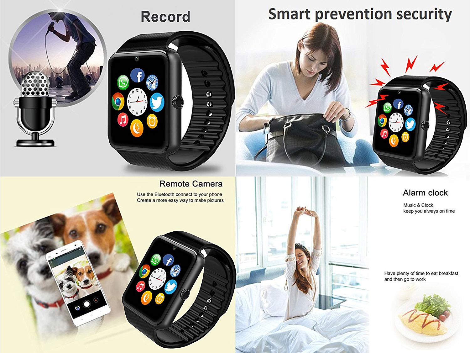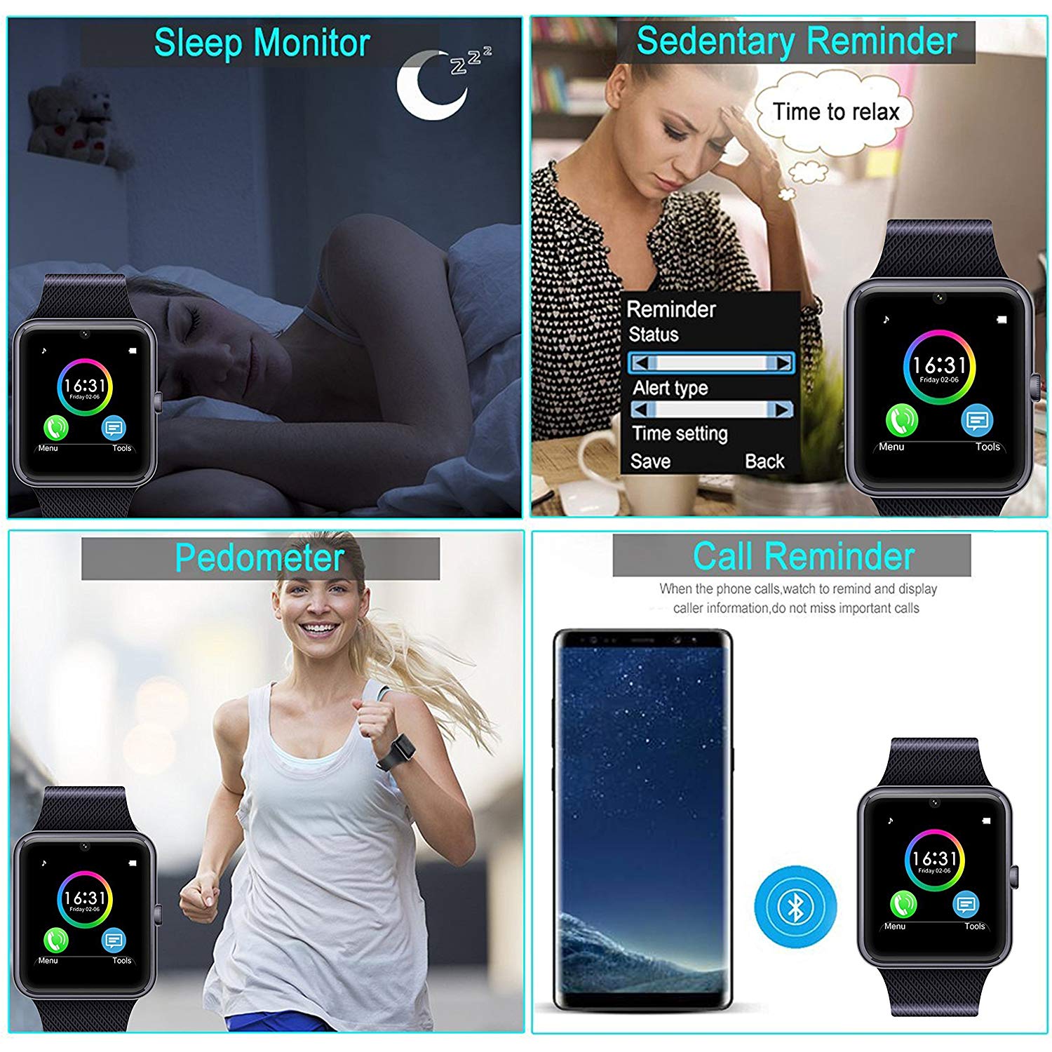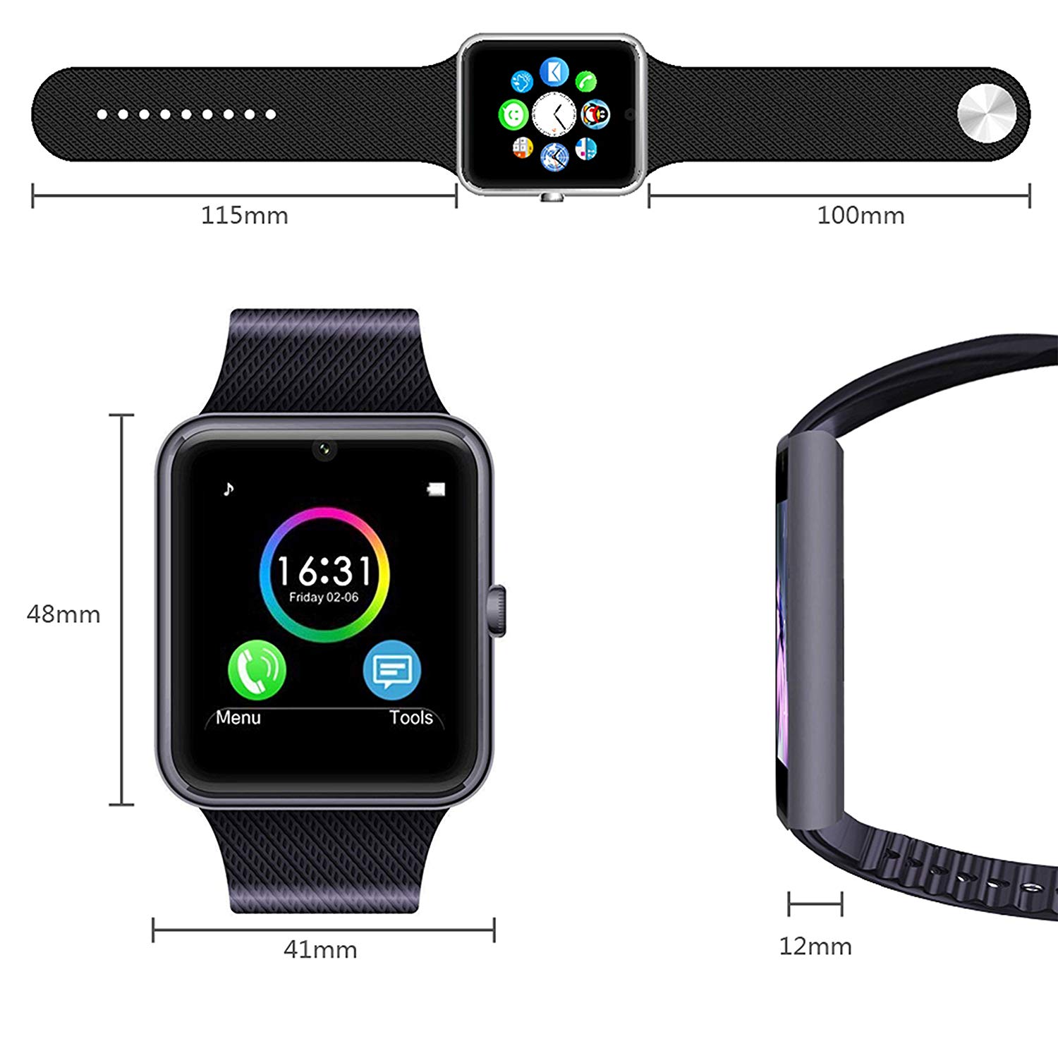 ● Phone function: Make phone call directly from the smart watch,including answering and dial-up.SIM slot,support make calls by Bluetooth or smart watch