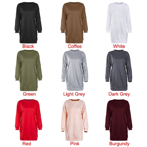 New Women Sweatshirt Long Sleeves O-Neck Solid Casual Loose Long Top Pullover