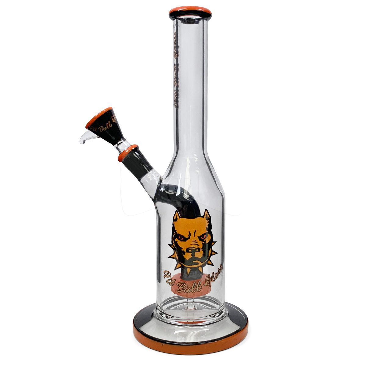 The Pit Bull 10″ Bottle with Wheel Perc is a must have for any smoking connoisseurs ensemble. These lovely glass pieces filter your favorite legal smoking blends to the utmost quality so your legal blends draw smooth every time. Its named, of course, because of its unmistakable bottle shape, which provides the perfect housing for the wheel perc that creates a 360° shower of bubbles. This simple, yet beautiful glass piece comes with a matching bowl and accented mouthpiece, which completes its finished look. Our Butler recommends you add this phenomenal piece to your ever-growing collection today! This glass piece has a 14mm female joint that will fit 14mm male accessories and replacements.