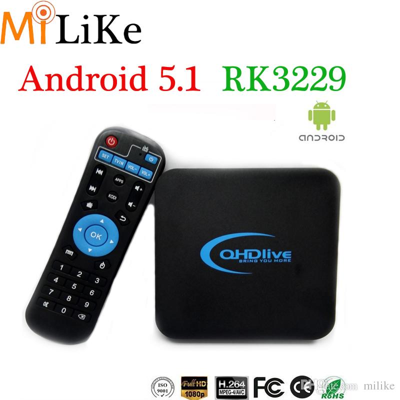 QHDlive TV box RK3229 with stable quality and fast speed, factory accpets OEM orders customization: logo on device ,packing box , boot up logo , menu logo