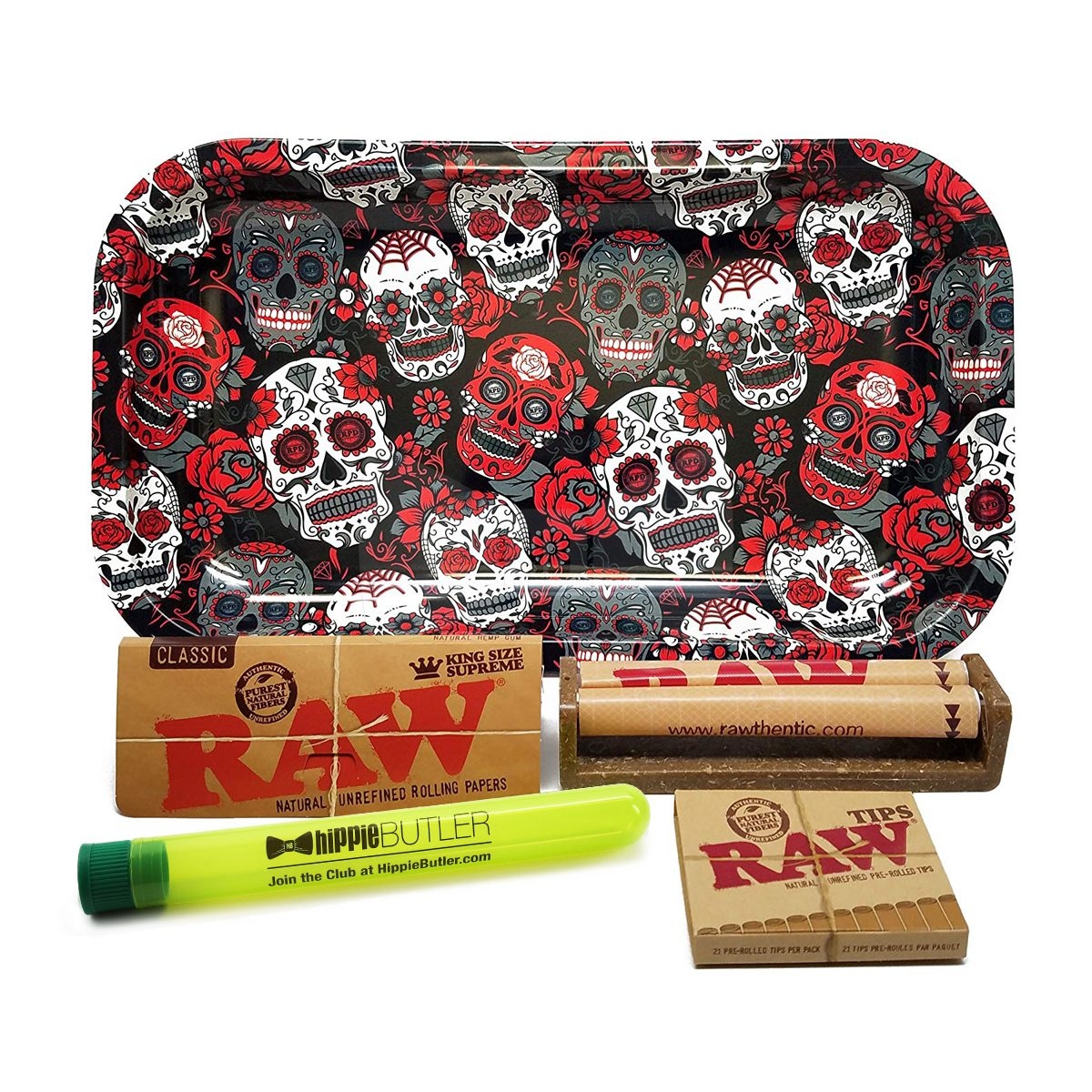 Have you ever sat down to roll up your favorite smokable when you realized you were missing something? We say never again with the RAW King Supreme Rolling bundle! Includes king size RAW brand papers, roller, pre-rolled tips, doob tube for storage, and you know what? Were gonna let you pick your tray so you can show off your own personal style. So go ahead, sit down, and roll knowing you have all you need to get started. Color of container may vary.