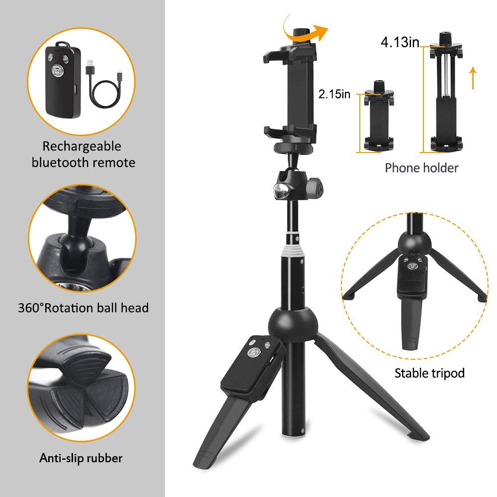 The portable and light selfie stick tripod can retract to 8 inches. Its weight is 8.3 ounces, it’s convenient for you to carry everywhere.