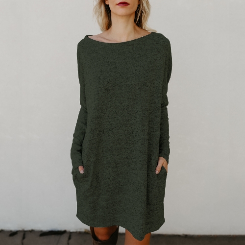 Sexy Women Loose Knit Sweater Dress Long Sleeves Pockets Solid Casual Party Mini Straight Dress