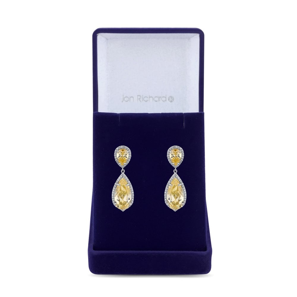 Silver Plated Cubic Zirconia Yellow Crystal Peardrop Earring – Gift Boxed