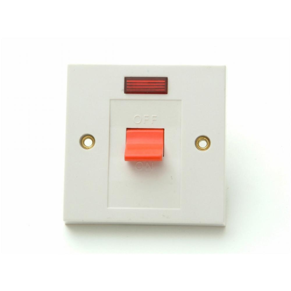 DP Neon Switches.Traditional white plastic design.45 amp double pole switch with neon indicator. Colour. White.
