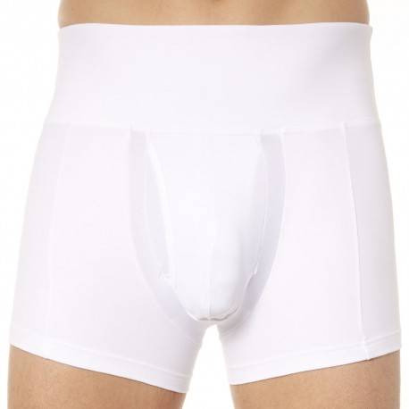 Enhancing cotton boxer featuring a 4 inch Slim-Waist band. Provides a real slimming effect and improves posture thanks to lumbar support. Lined pouch with side fly.