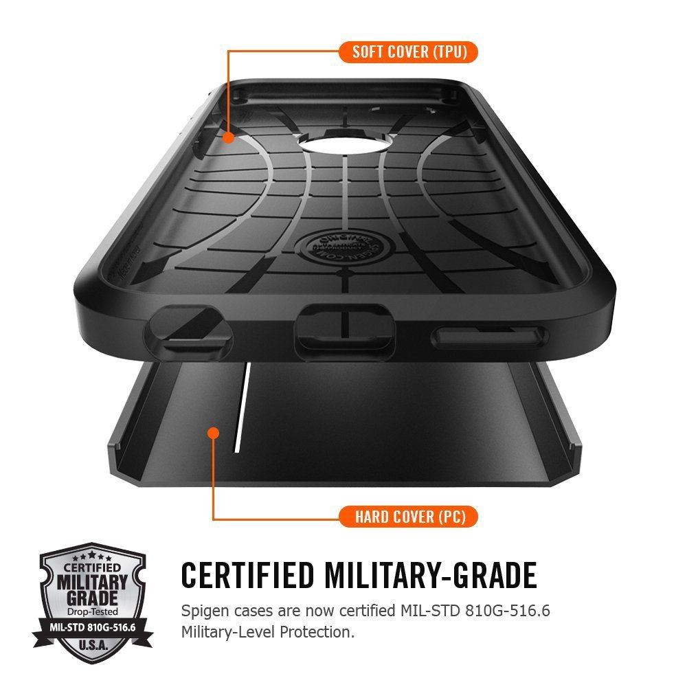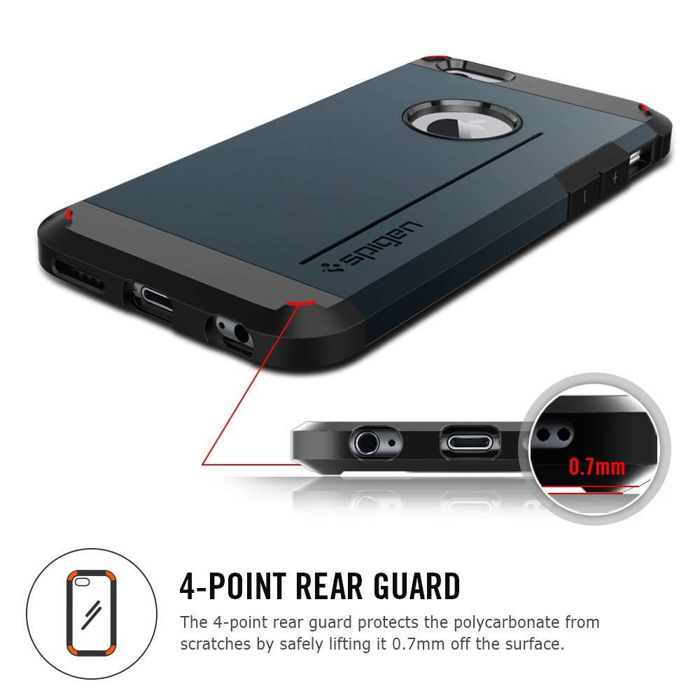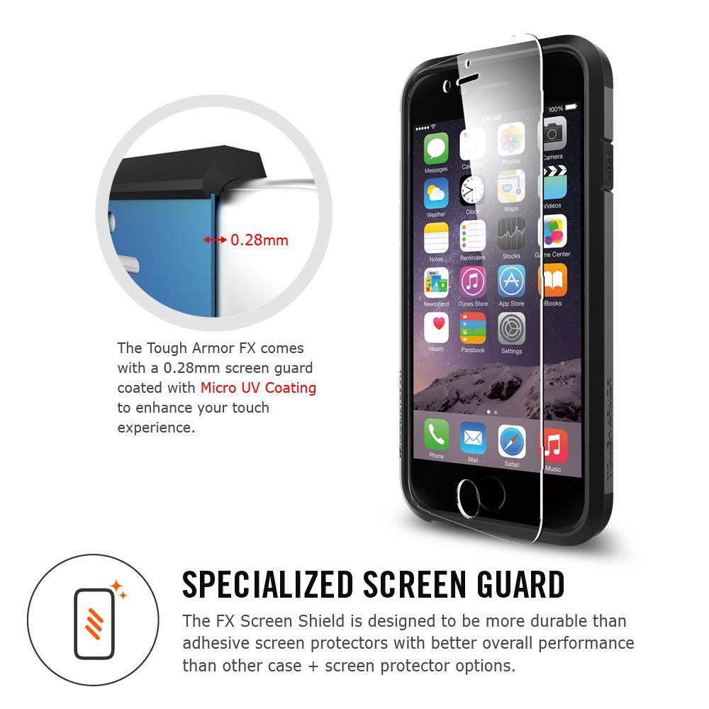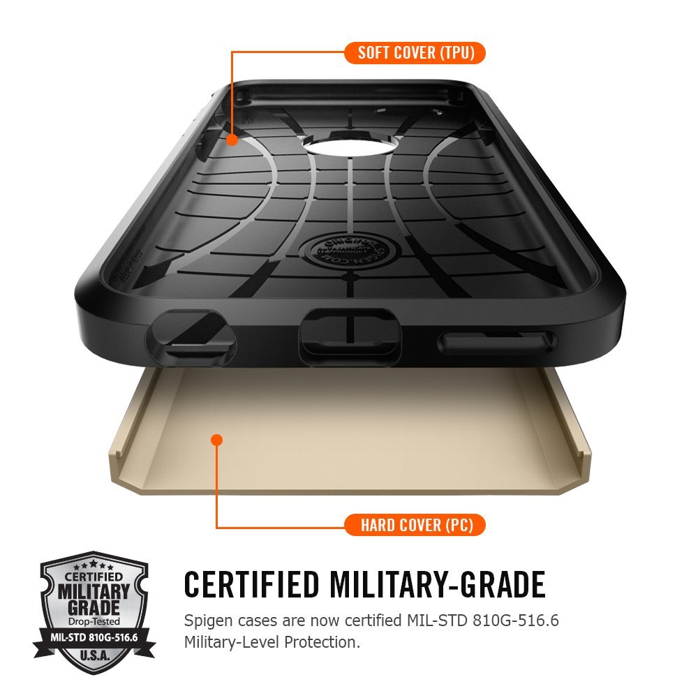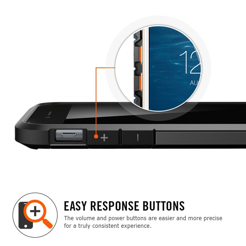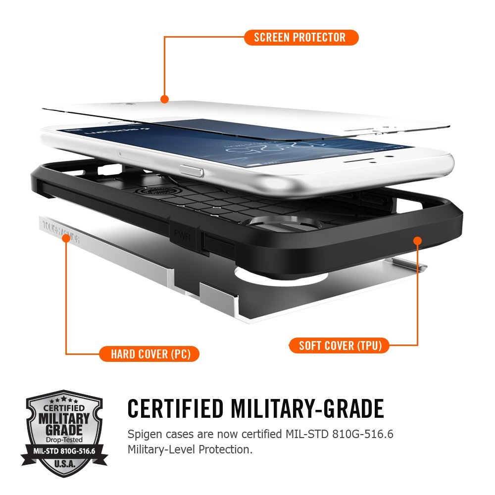 The Tough Armor case is MIL-STD 810G-516.6 certified and offers military-grade protection thanks to its dual-layered construction of shock-absorbing TPU and hard PC casing supported by Air Cushion Technology.