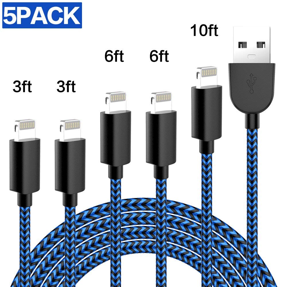 [5 Pack 3/3/6/6/10ft]Nylon Braided iphone lightning cable.