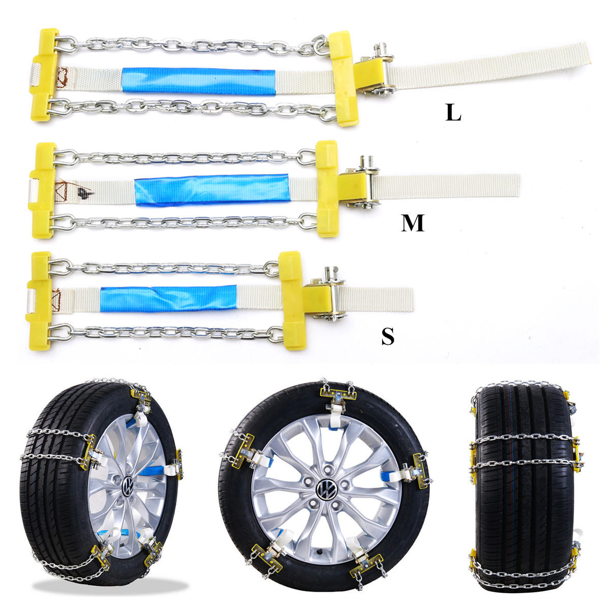 Feature:Alloy steel main chains are resistant to the pressure, low temperature and wear.A wear-resistant pad is designed to protect the tires.The strong safe engineering belt is resistant to the tension, low temperature and wear.The chain closely fits the tires without gaps, which is very safe for driving.Applicable Scope: ice road, snow road and mud road.Fit for Car/SUV.Specification:Material: Alloy steelSize: S, M, LPackage Included:1 X Alloy Steel Anti-skid Chain(Not included Tire)