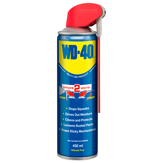 WD-40 Multi-Use Product SmartStraw protects metal from rust and corrosion, penetrates stuck parts, displaces moisture and lubricates almost anything. It even removes grease, grime and more from most surfaces.