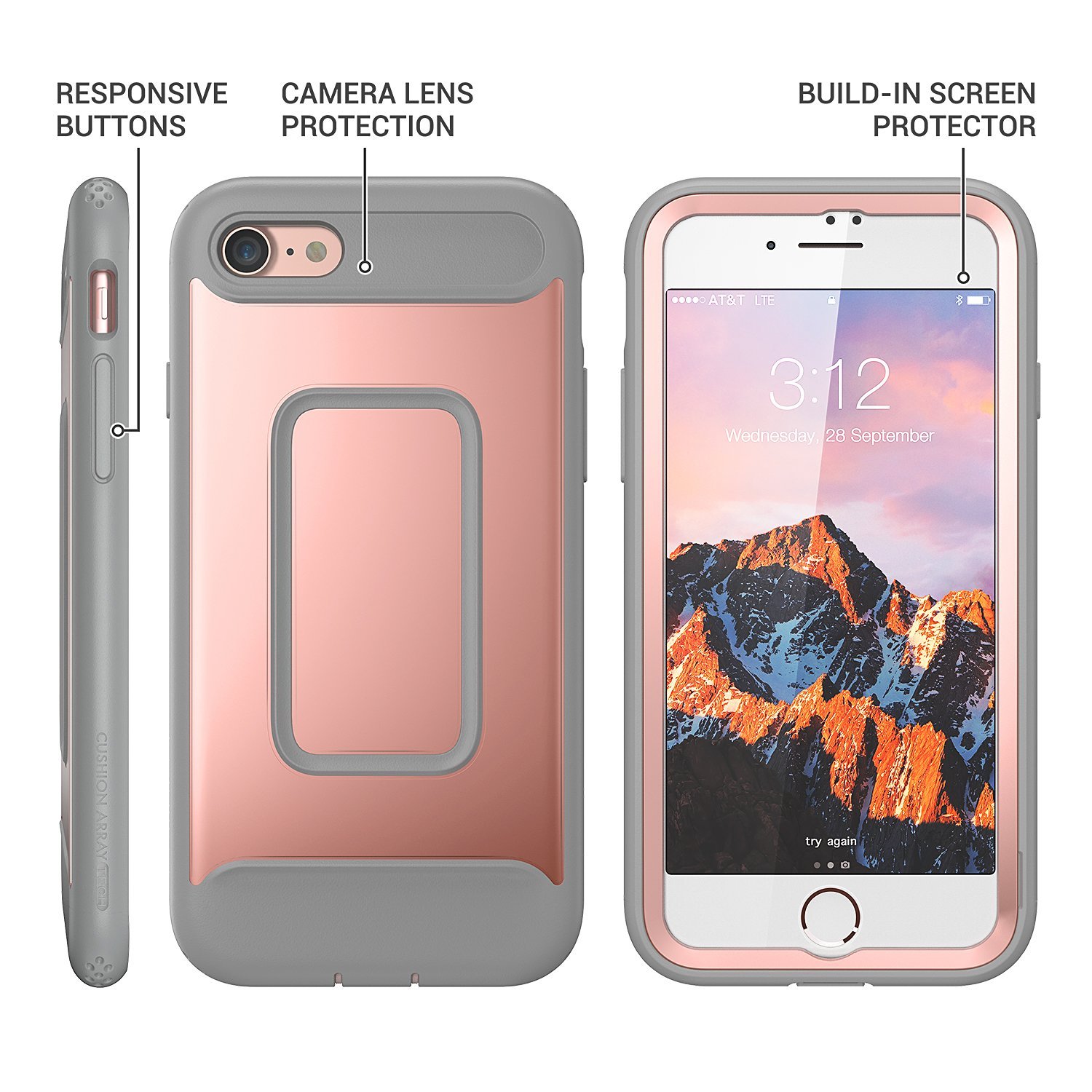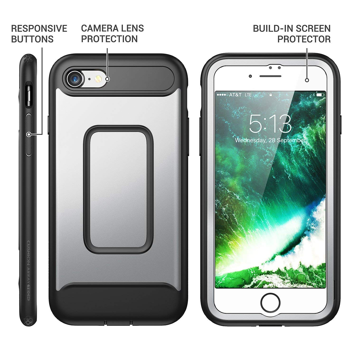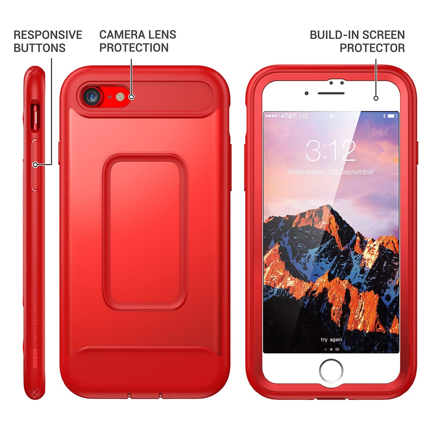 Full-body rugged design offers 360 Degree protection, With Built-in Screen Protector