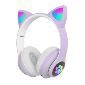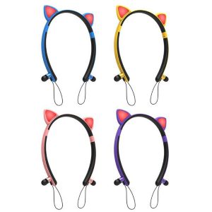 cute led cat bluetooth 5.0 headphones noise cancelling headset support tf card 3.5mm plug with mic stereo earphones