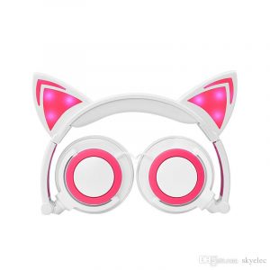 Headset Children's Cartoon Cat Ears Head-Mounted Luminous Foldable Mobile Phone Music Headphones For The Kids Gift