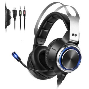 headset headphones for gaming gamer gaming pc stereo headphone over ear headband earphone with mic microphone led light wholsale