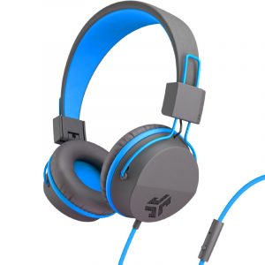 JLab Neon Wired Headphones In-Line Mic + Controls – Grey/Blue