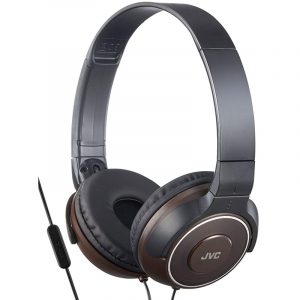 JVC Lightweight Foldable Headphones with Remote Control & Microphone – Brown