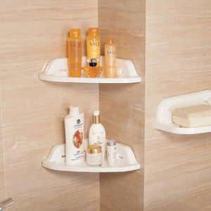 White PVC Bathroom Corner Shelf Strong Suction Organizer Storage Rack Holder