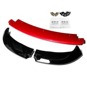 3Pcs Gloss Black Red ABS Front Bumper Lip Protector Spoiler For Tesla Model 3 2017-2019